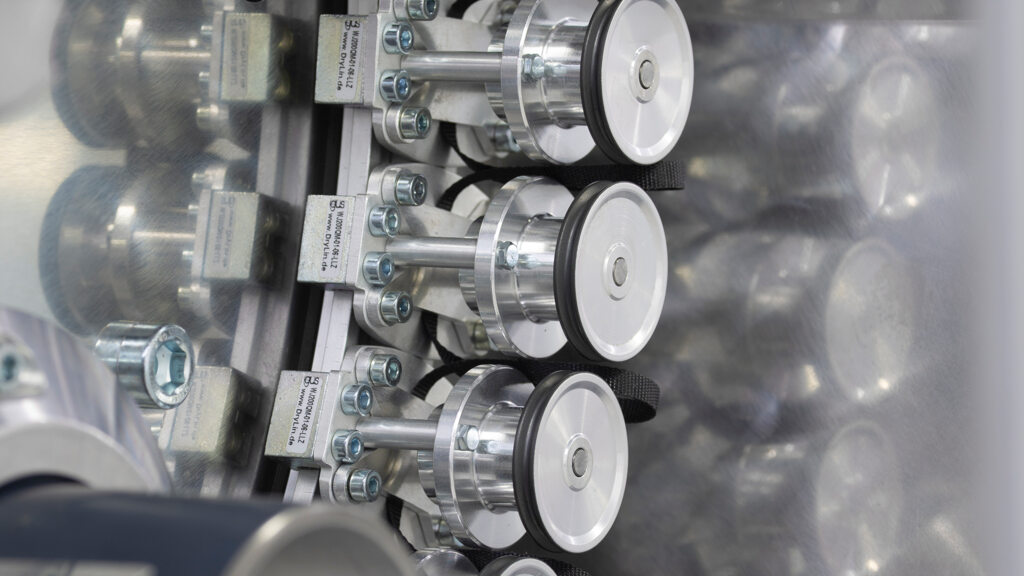 Another component of this perfected concept is the wiping robot, which is already in use in a similar manner at the Barmag filament spinning mill. This means that the benefits—consistent, excellent wiping quality, extended cleaning intervals, reduced labor costs, savings on consumables, and the synchronization of cleaning cycles with can changes and splice management—are now available in the staple fiber process.