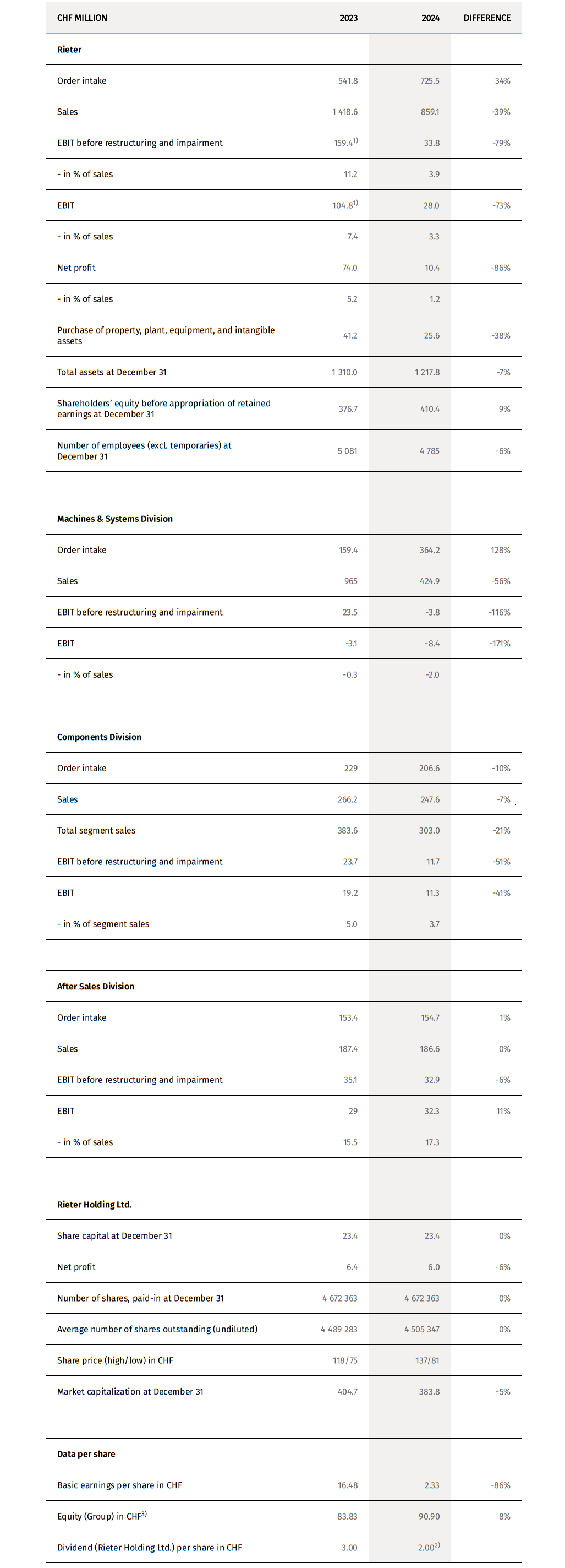 Rieter closed the 2024 financial year with a net profit of CHF 10.4 million (2023: CHF 74.0 million).