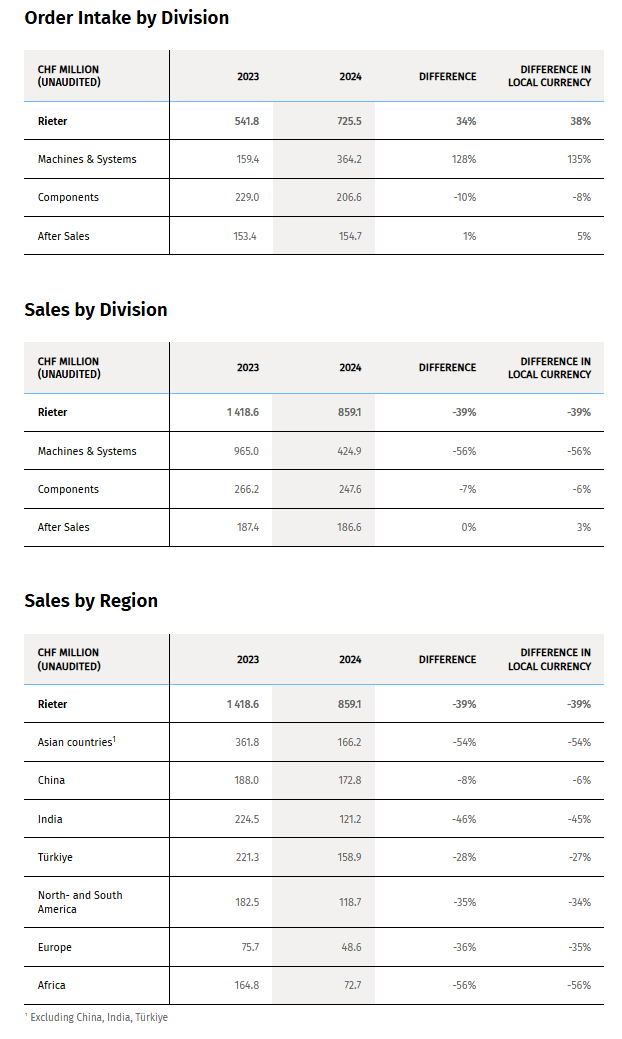 Rieter will provide further details on the financial year on March 13, 2025. The Group will also publish its Annual Report 2024 and hold an annual results press conference.